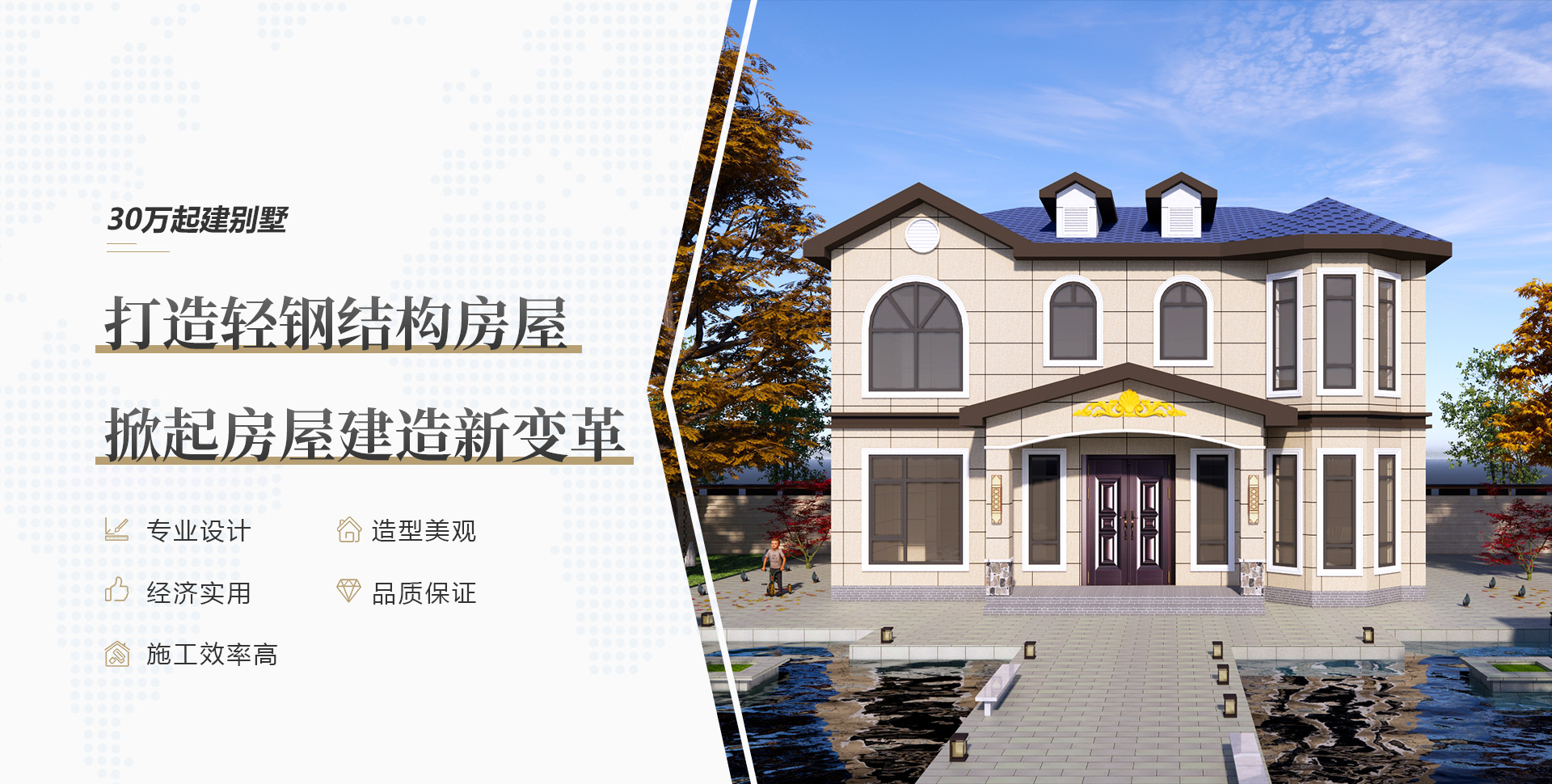 專業(yè)的設計師團隊,個性化定制輕鋼別墅高端住宅,擁有多年項目施工經(jīng)驗,完成上千套鋼結(jié)構(gòu)房屋的施工,完善的售后服務,讓您建房無憂!